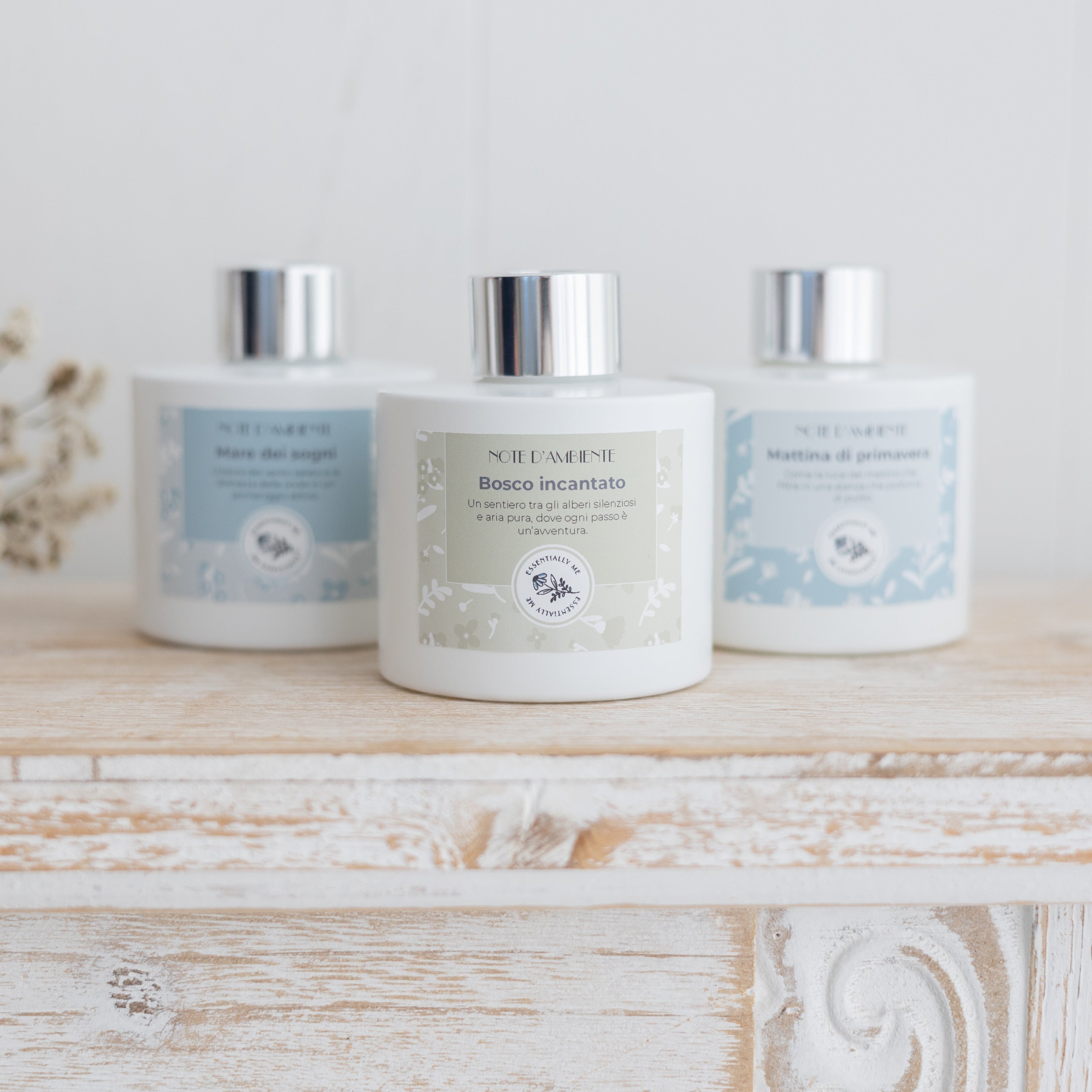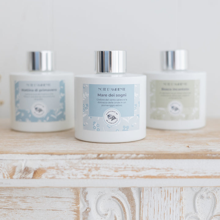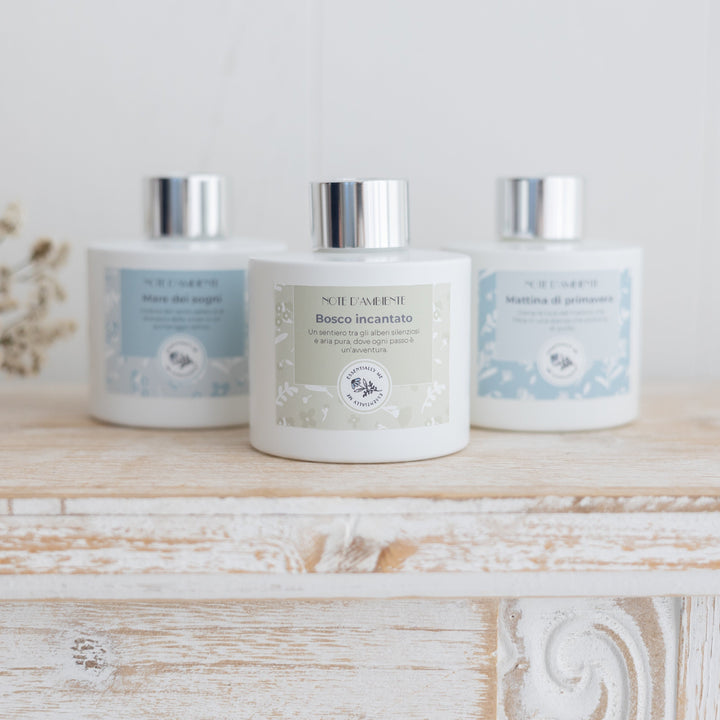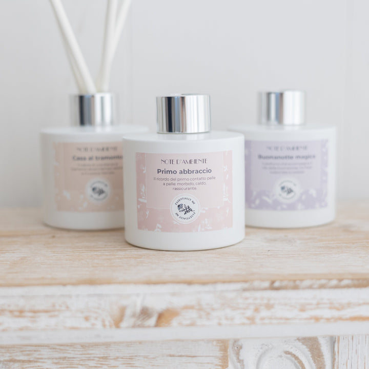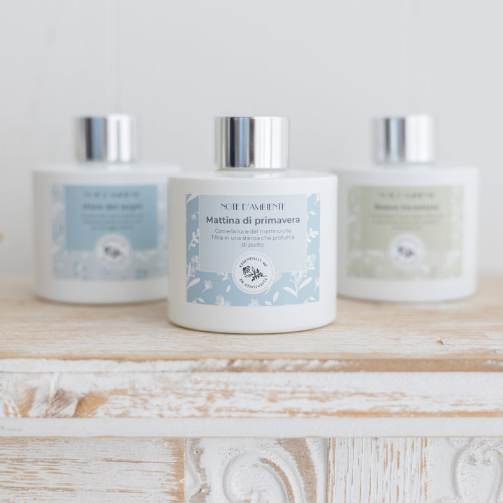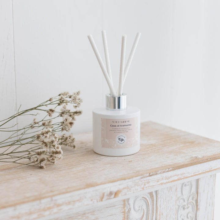 Il diffusore per ambienti a bastoncini profuma l’ambiente con delicatezza e armonia, trasformando ogni giorno, in un piccolo rituale di bellezza. Un profumatore naturale per ambienti che arreda, rilassa e accoglie con semplicità.