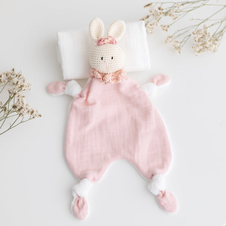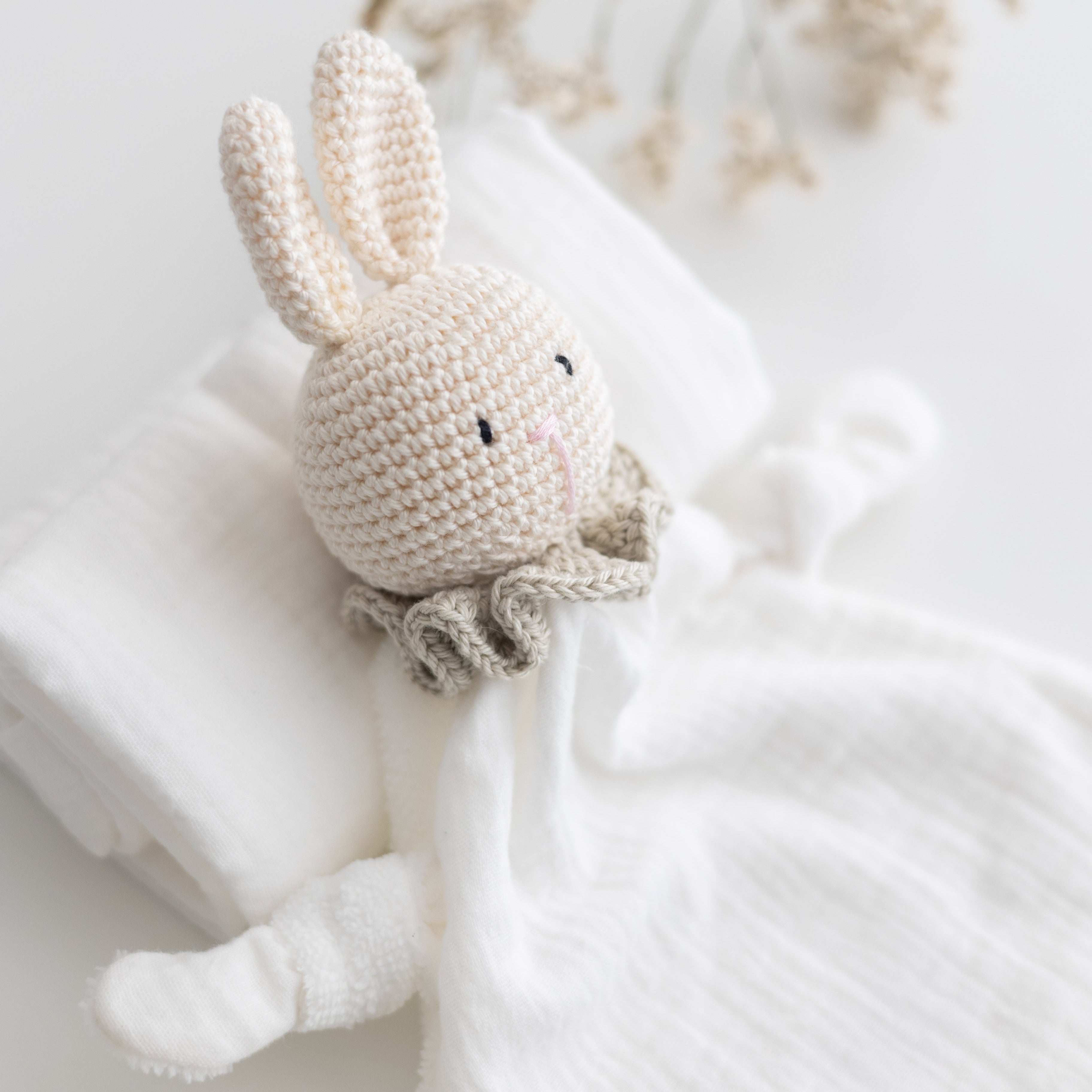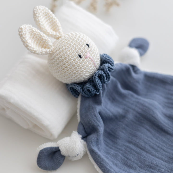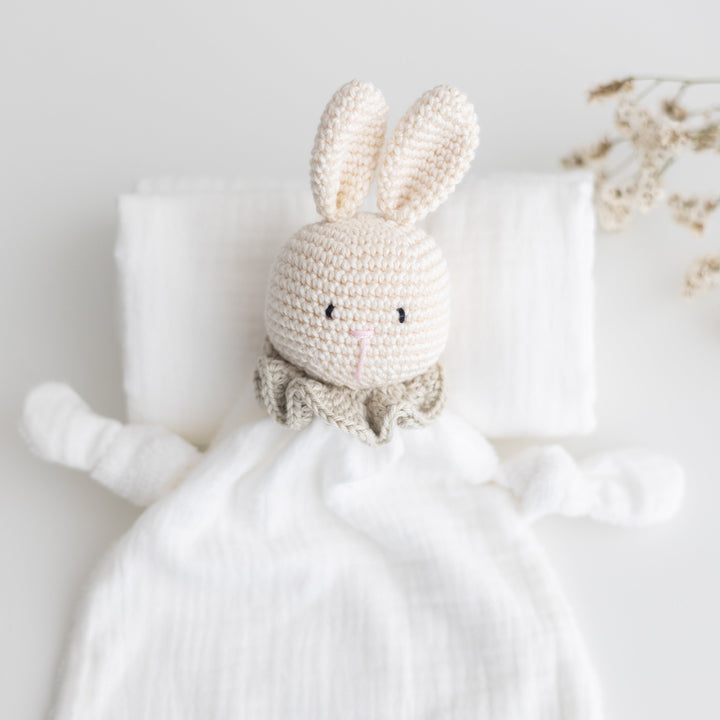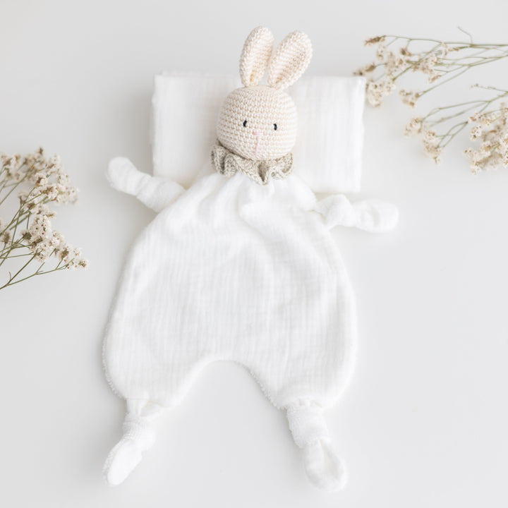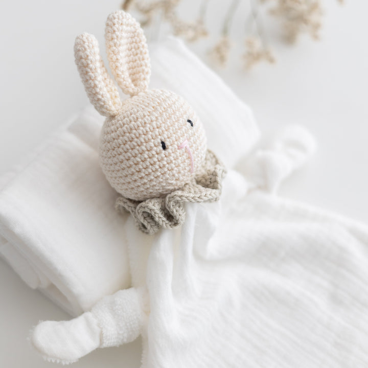 Dolci compagni di coccole, morbidi e fatti a mano, pronti a rassicurare e accompagnare i tuoi piccoli nei momenti di sonno e di gioco. Ogni doudou nasce dall'unione dei morbidi tessuti biologici GOTS di Samelù e i filati di cotone certificati OEKO TEX di Essentially Me, creando un oggetto semplice e realizzato con attenzione, pensato per offire al tuo bambino una presenza morbida e rassicurante nei primi mesi di vita.