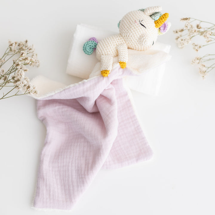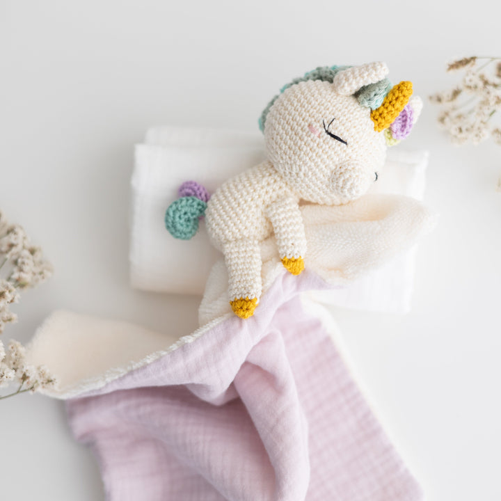 Dolci compagni di coccole, morbidi e fatti a mano, pronti a rassicurare e accompagnare i tuoi piccoli nei momenti di sonno e di gioco. Ogni doudou nasce dall'unione dei morbidi tessuti biologici GOTS di Samelù e i filati di cotone certificati OEKO TEX di Essentially Me, creando un oggetto semplice e realizzato con attenzione, pensato per offire al tuo bambino una presenza morbida e rassicurante nei primi mesi di vita.