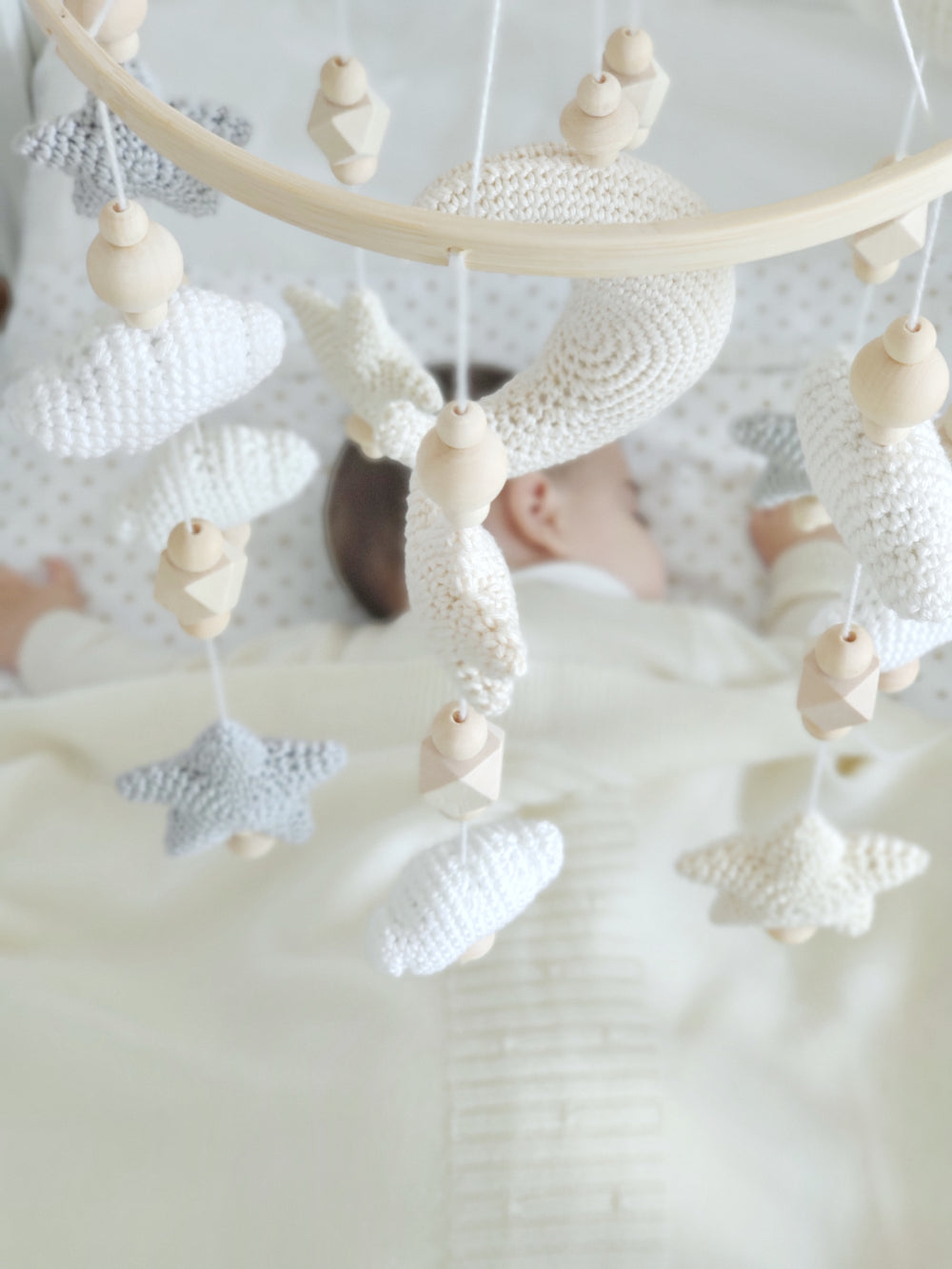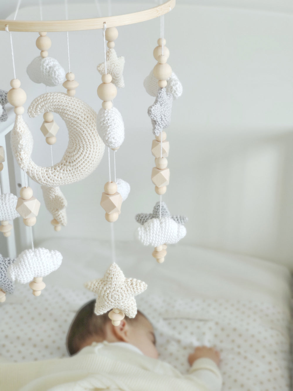 Dolci melodie di fili intrecciati accompagnano il sonno e i sogni dei più piccoli. La giostrina neonati è un piccolo mondo sospeso fatto di tenerezza. Ogni tema è personalizzabile: un intreccio di colore, amore e delicatezza, da scegliere o immaginare su misura.